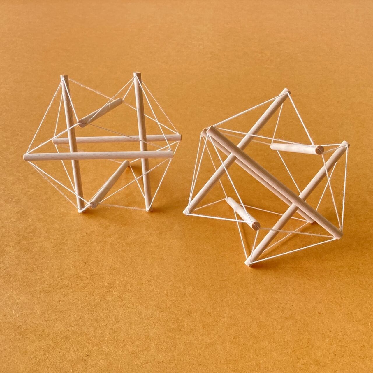 テンセグリティ(Tensegrity)は、バックミンスター・フラーが提唱した概念でTension(張力)とIntegrity(統合)からの造語です。